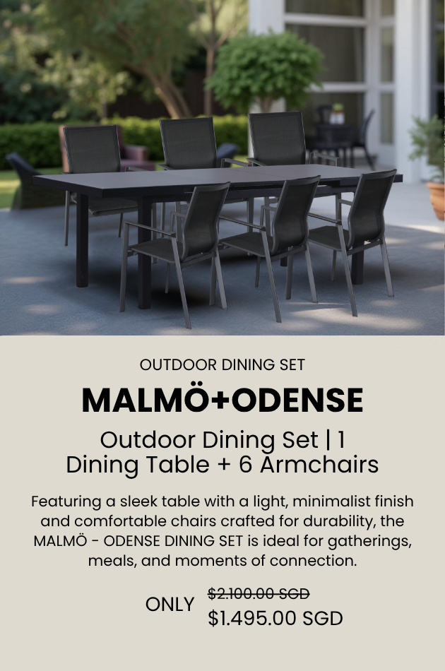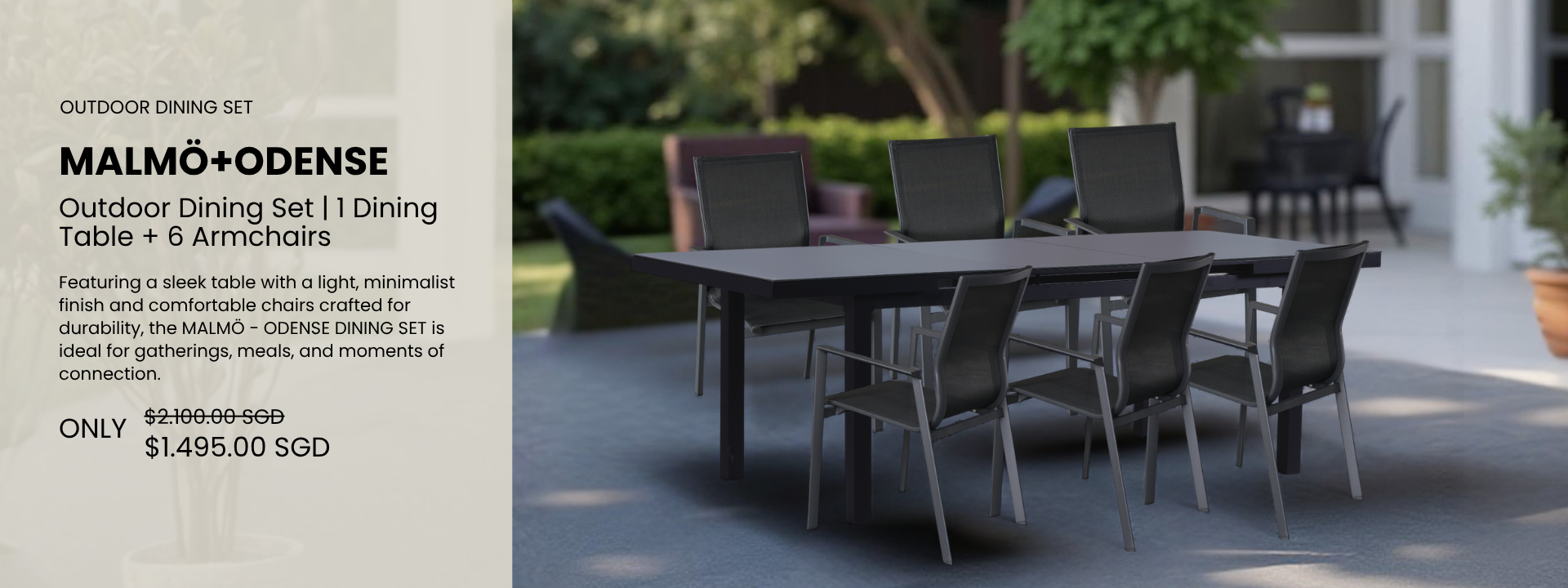 MALMÖ+ODENSE Outdoor Dining Set | 1 Dining Table + 6 Armchairs