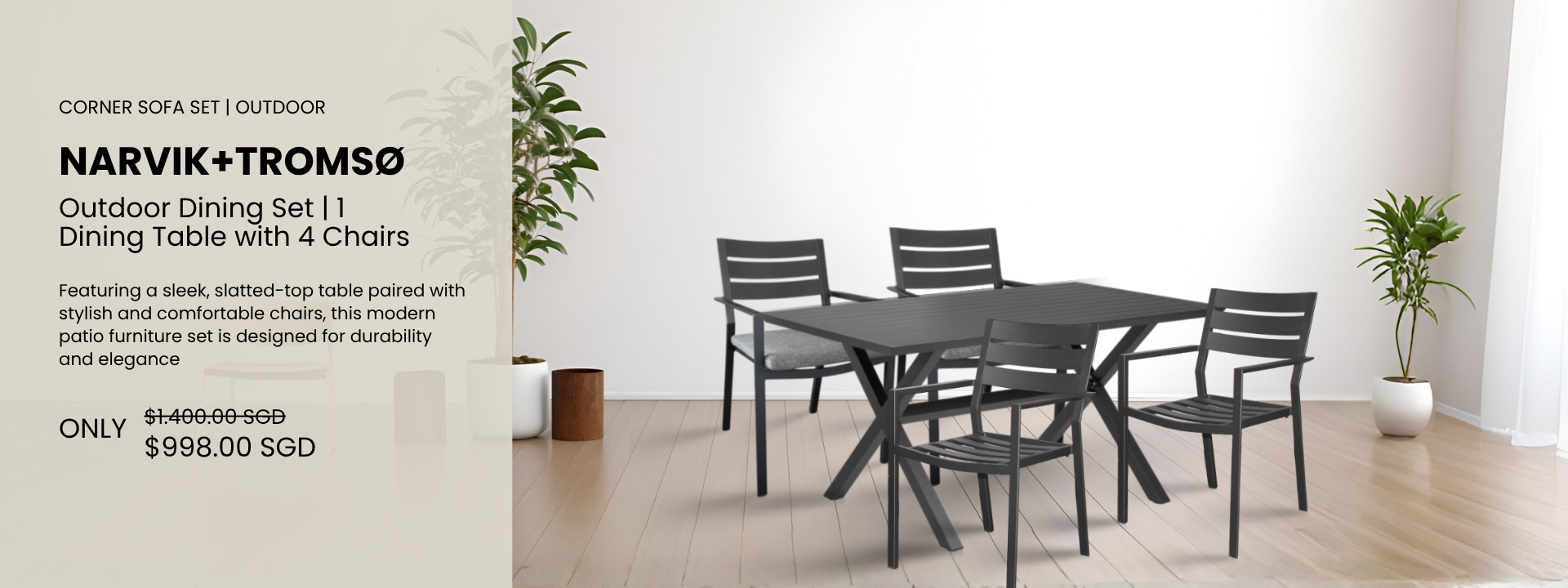 NARVIK+TROMSØ Outdoor Dining Set | 1 Dining Table with 4 Chairs