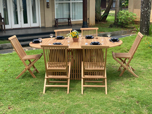 NUSA DUA + JAVA Outdoor Dining Set | 1 Large Dining Table with 6 Chairs (Teak Wood)