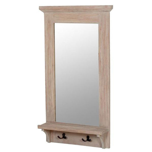 CECILIA Country Style Wall Mirror with Hooks | Teak oil