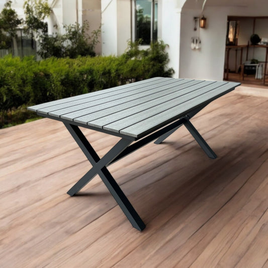 Weather resistant outdoor dining furniture in synthetic rattan, wicker and teak. From smaller sets to fit in balcony to big table for patio and verandah.