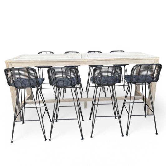TEDUH-KYLO Outdoor Bar Set | 1 Bar Table + 8 Bar Chairs