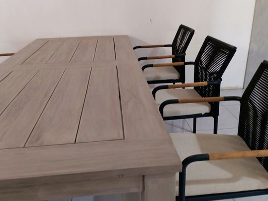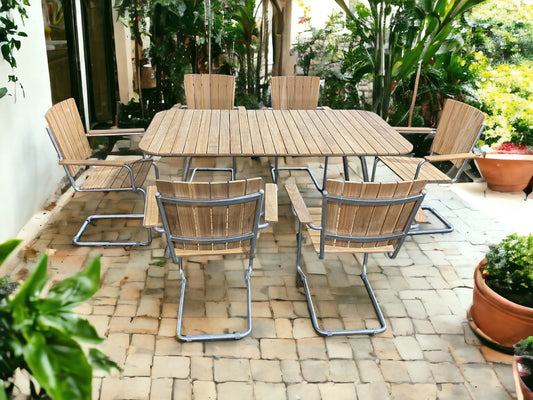 TRETES + DENPASAR Outdoor Dining Set | Teak Wood Dining Table with 6 Armchairs