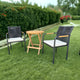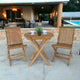 “Discover this professionally handcrafted teak wood table with intricate geometric patterns and robust crossed legs design—ideal for adding a touch of artisanal elegance to your outdoor living space.”