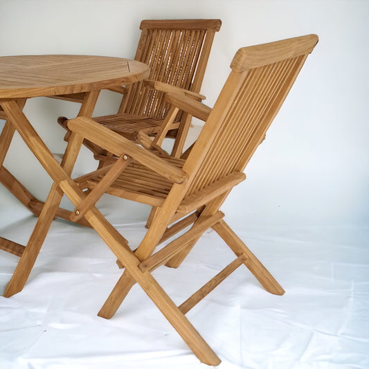 JAVA Outdoor Set (Teak Wood) | Dining Table (Round 100) with 4 Armchairs