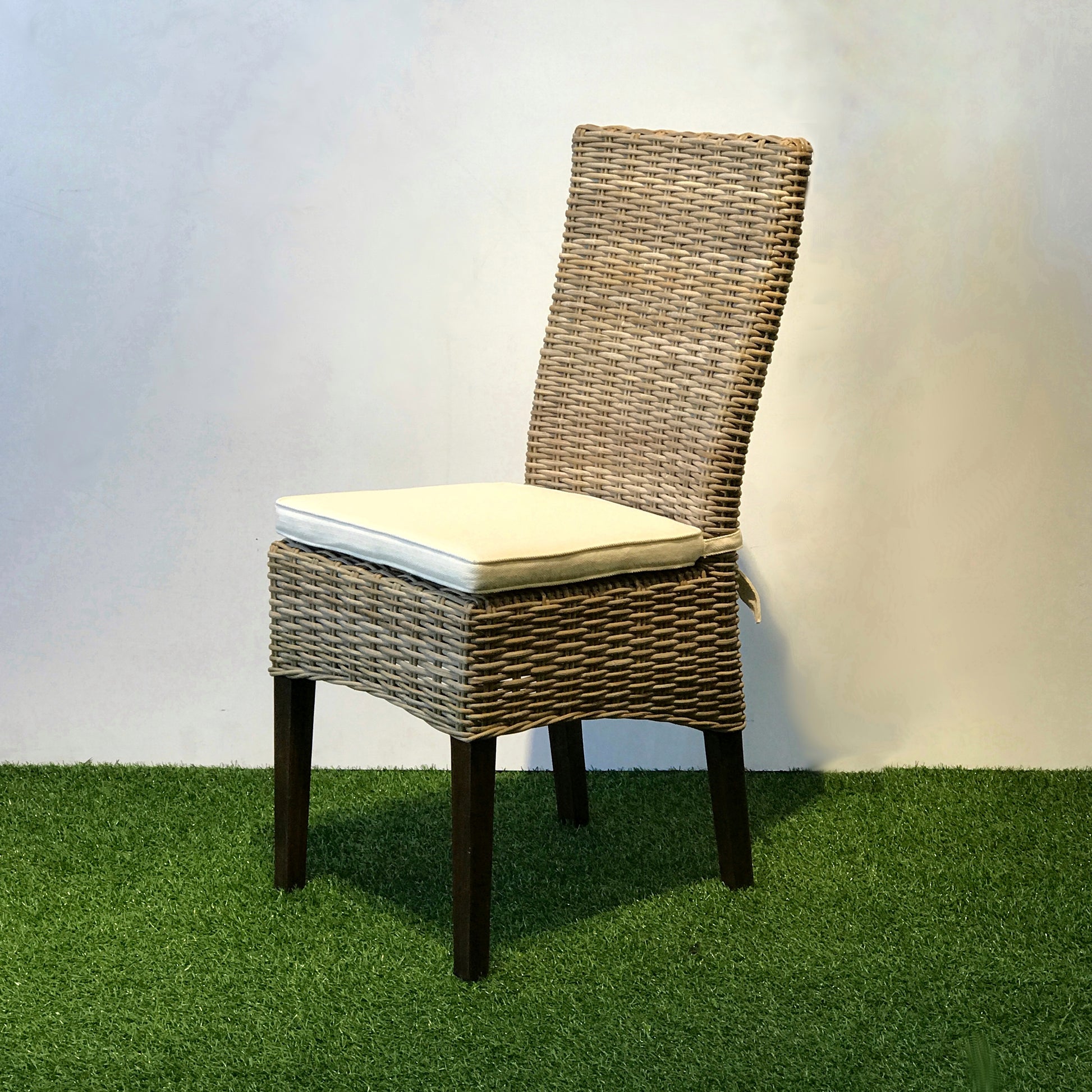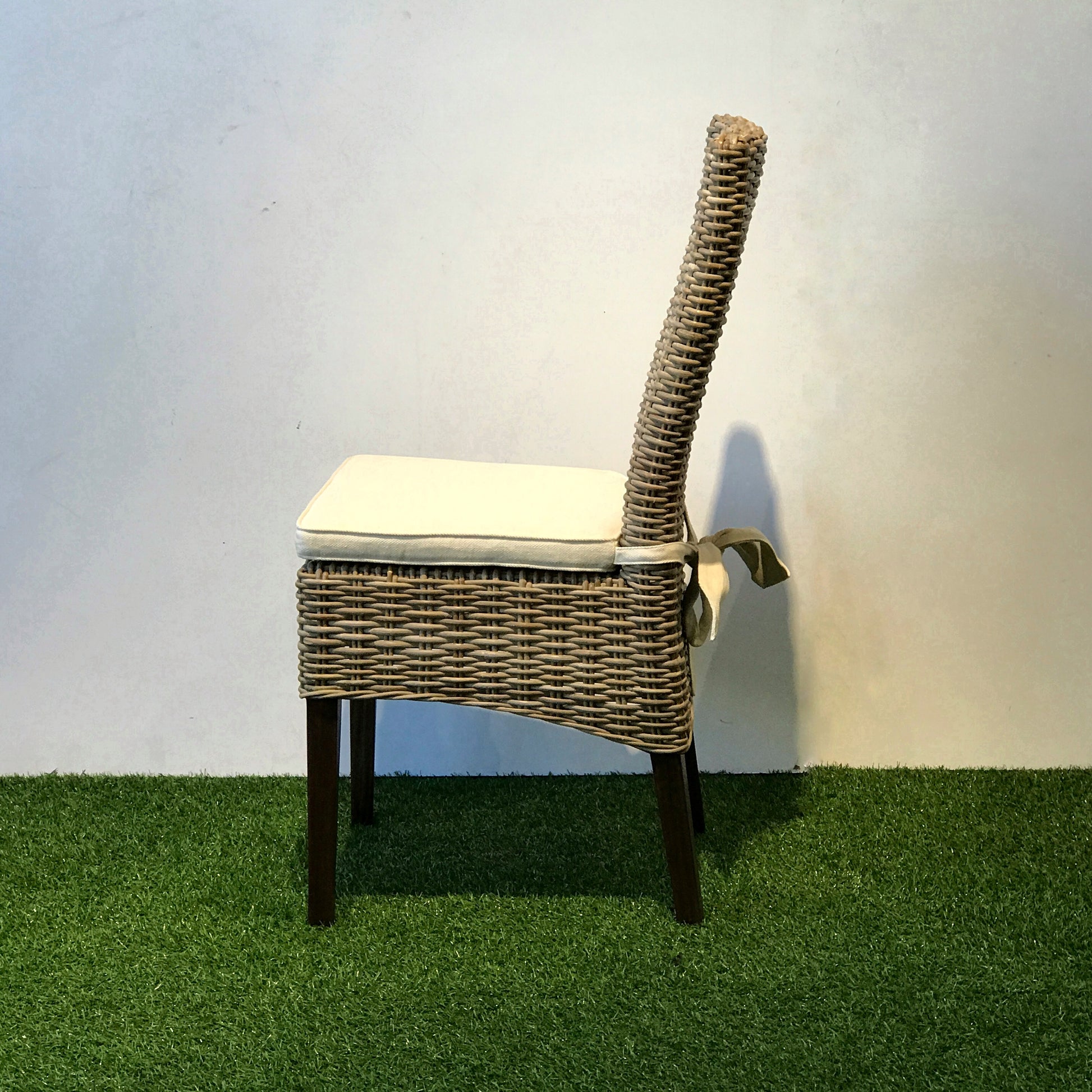 Modern classic full natural rattan side chair in Mahogany legs with cushion in white canvas material.