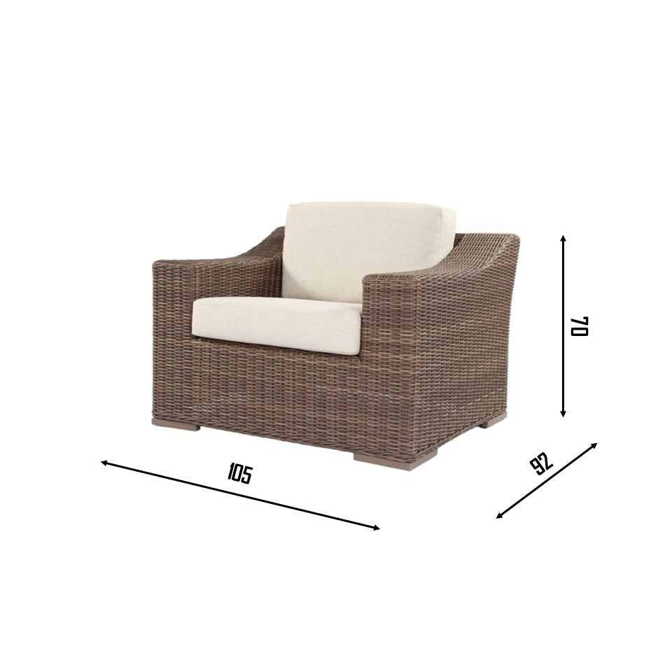 Sofa: synthetic wicker, easy to maintain, durable, weatherproof.